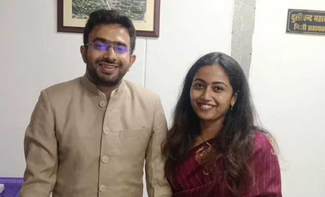 ਮਾਧਵ ਭਾਰਦਵਾਜ ਅਲਵਰ ਵਿੱਚ SDM ਵਜੋਂ ਕੰਮ ਕਰ ਰਹੇ ਹਨ, ਜਦੋਂ ਕਿ ਉਨ੍ਹਾਂ ਦੀ ਪਤਨੀ ਅਦਿਤੀ ਵਾਸਨੇ ਗੁਜਰਾਤ ਦੇ ਜਾਮਨਗਰ ਵਿੱਚ SDM ਹਨ। ਜਦੋਂ ਕਿ ਦੇਸ਼ ਭਰ ਵਿੱਚ ਵਿਆਹਾਂ ‘ਤੇ ਲੱਖਾਂ-ਕਰੋੜਾਂ ਰੁਪਏ ਖਰਚ ਕੀਤੇ ਜਾਂਦੇ ਹਨ ਅਤੇ ਬਹੁਤ ਸਾਰਾ ਸ਼ੋਅ ਕੀਤਾ ਜਾਂਦਾ ਹੈ। ਇਸ ਦੌਰਾਨ, ਅਲਵਰ ਦੇ ਮਿੰਨੀ ਸਕੱਤਰੇਤ ਵਿੱਚ ਦੋ ਆਈਏਐਸ ਅਧਿਕਾਰੀਆਂ ਦਾ ਵਿਆਹ ਚਰਚਾ ਦਾ ਵਿਸ਼ਾ ਬਣ ਗਿਆ। ਇਹ ਧਿਆਨ ਦੇਣ ਯੋਗ ਹੈ ਕਿ ਮਸੂਰੀ ਦੇ ਰਹਿਣ ਵਾਲੇ ਰਾਜਕੁਮਾਰ ਭਾਰਦਵਾਜ ਦਾ ਪੁੱਤਰ ਮਾਧਵ ਭਾਰਦਵਾਜ ਅਲਵਰ ਵਿੱਚ ਐਸਡੀਐਮ ਵਜੋਂ ਤਾਇਨਾਤ ਹੈ, ਜਦੋਂ ਕਿ ਉਸਦੀ ਪਤਨੀ, ਅਦਿਤੀ ਵਾਸਨੇ, ਮੂਲ ਰੂਪ ਵਿੱਚ ਉੱਤਰ ਪ੍ਰਦੇਸ਼ ਦੇ ਬਰੇਲੀ ਤੋਂ ਹੈ।