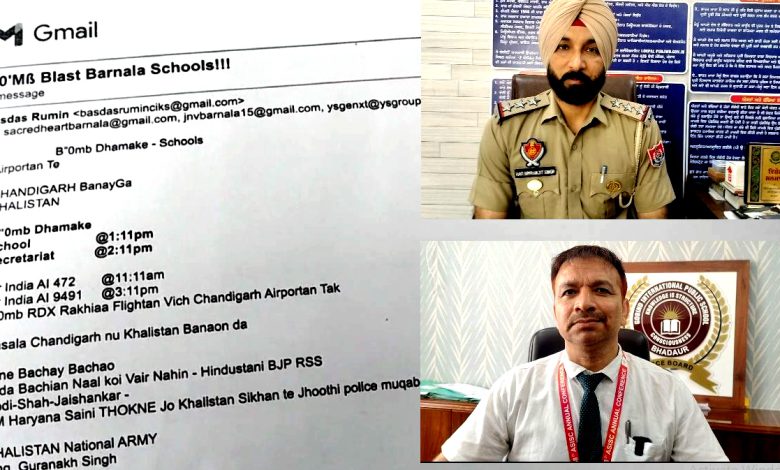 ਬਰਨਾਲਾ ਦੇ ਕਈ ਨਿੱਜੀ ਸਕੂਲਾਂ ਨੂੰ ਬੰਬ ਨਾਲ ਉਡਾਉਣ ਦੀਆਂ ਧਮਕੀਆਂ ਮਿਲੀਆਂ ਹਨ। ਜਿਸ ਤੋਂ ਬਾਅਦ ਪੂਰੇ ਖੇਤਰ ਵਿੱਚ ਹਲਚਲ ਮਚ ਗਈ ਹੈ। ਜਿਸ ਕਾਰਨ ਸਥਾਨਕ ਪ੍ਰਸ਼ਾਸਨ ਅਤੇ ਪੁਲਿਸ ਵਿਭਾਗ ਤੁਰੰਤ ਹਰਕਤ ਵਿੱਚ ਆ ਗਏ ਹਨ। ਰਿਪੋਰਟਾਂ ਅਨੁਸਾਰ, ਬਰਨਾਲਾ ਦੇ ਮਸ਼ਹੂਰ ਸਕੂਲਾਂ ਜਿਵੇਂ ਕਿ ਟੰਡਨ ਇੰਟਰਨੈਸ਼ਨਲ ਸਕੂਲ, ਆਰੀਆ ਭੱਟਾ ਕਾਲਜ ਸਕੂਲ, ਵਾਈਸ ਸਕੂਲ 2 ਬ੍ਰਾਂਚ, ਸੈਕਰਡ ਹਾਰਟ ਸਕੂਲ, ਗੋਬਿੰਦ ਪਬਲਿਕ ਸਕੂਲ ਨੂੰ ਉਡਾਉਣ ਦੀ ਧਮਕੀ ਵਾਲੀ ਈਮੇਲ ਮਿਲੀ।